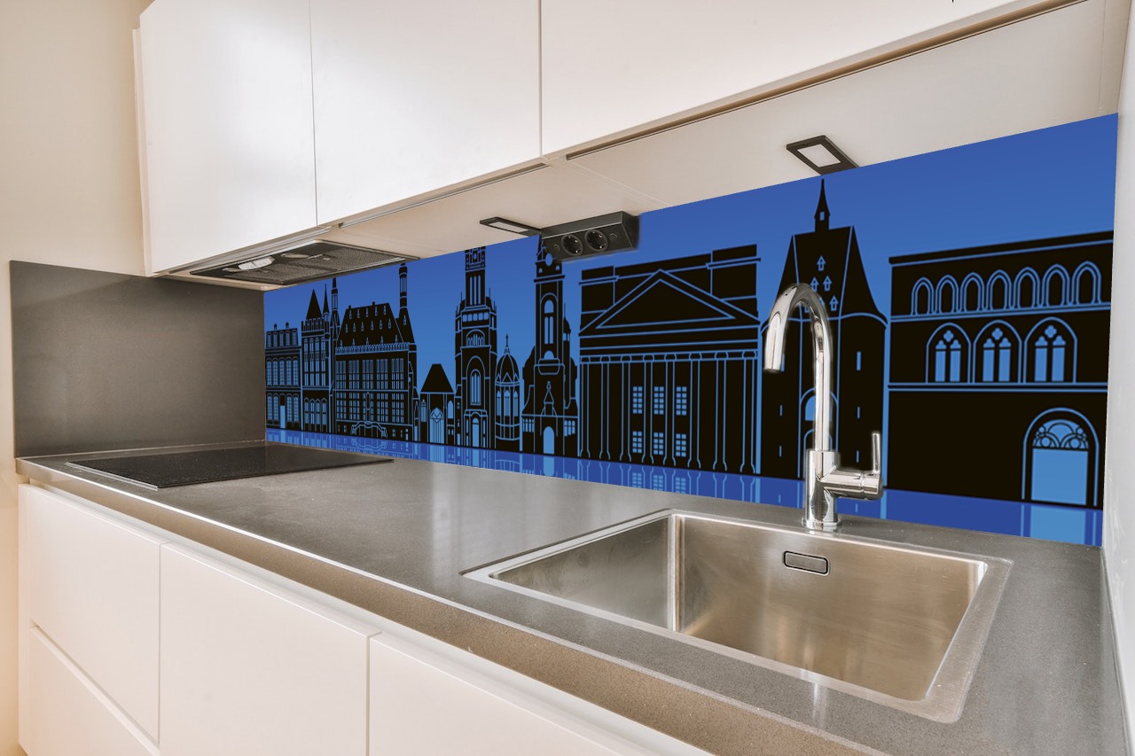 Weiterführende Links zu "Küchenrückwand Aachen-Skyline-blau Motiv 0111"